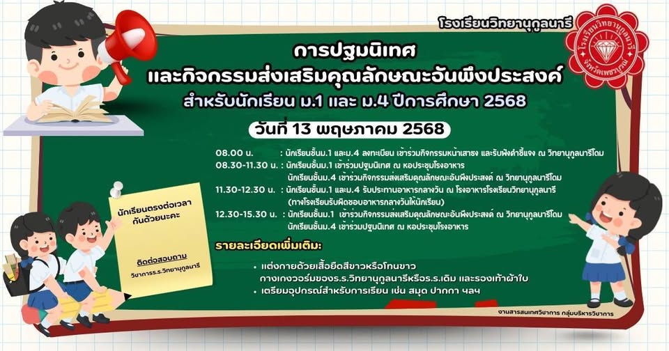 กำหนดการปฐมนิเทศ วันที่ 13 พฤษจิกายน 2568
