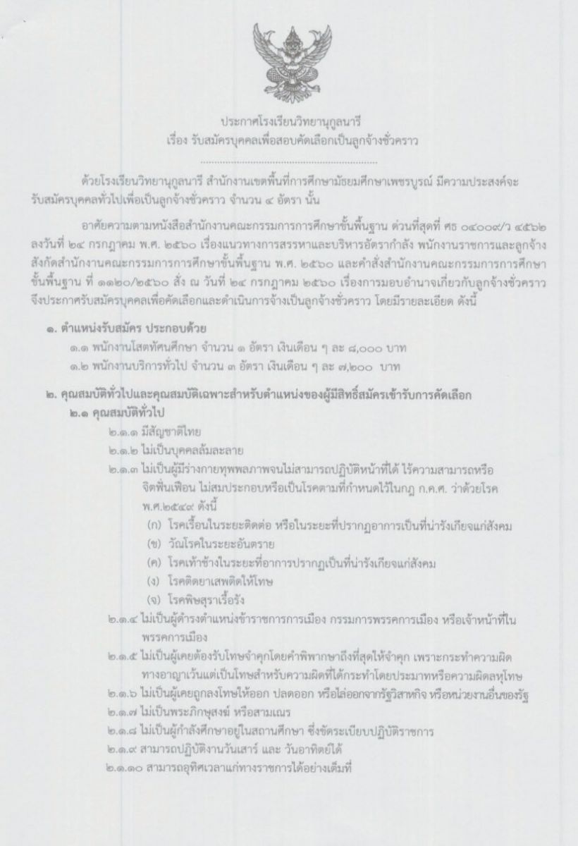 ประกาศ รับสมัครบุคคลเพื่อสอบคัดเลือกเป็นลูกจ้างชั่วคราว